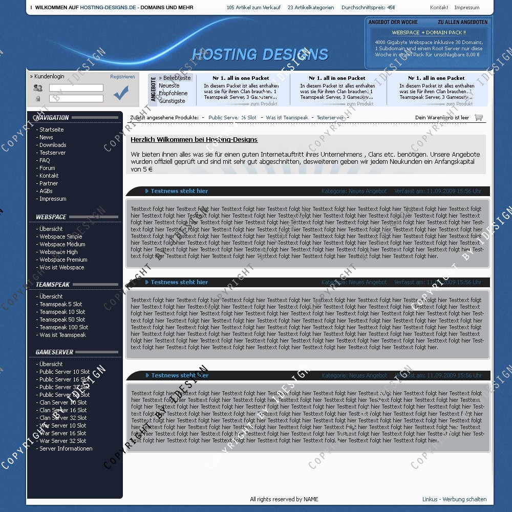Sehr übersichtlich aufgebautes Hosting Design. Sehr viele Funktionen mit eingebaut für ihren perfekten Internetauftritt